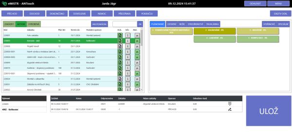 - máte přehled o rozpracovanosti zakázek a operací na všech pracovištích,
