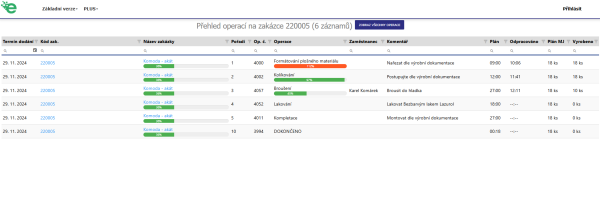 - evidujete operace ve výrobě a sledujete pokrok zakázky,