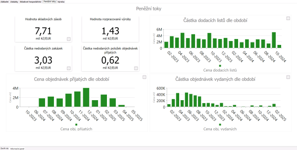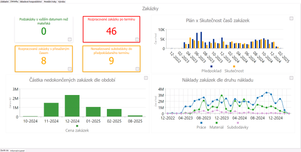 Všechny informace máte okamžitě dostupné – žádné zdržování, vše je připraveno na pár kliknutí. Díky tomu rychleji rozhodujete, máte lepší kontrolu nad náklady a dodáváte výrobky včas v požadované kvalitě.