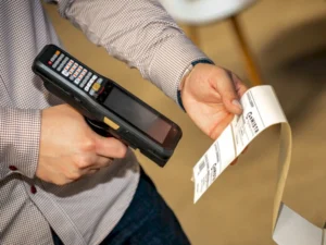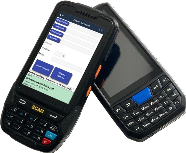 - Mobilní terminál VMT 1200 – 4″ display, mobilní Wifi , LTE terminál s klávesnicí, 1D laserová čtečka kódů, baterie na 12h provozu